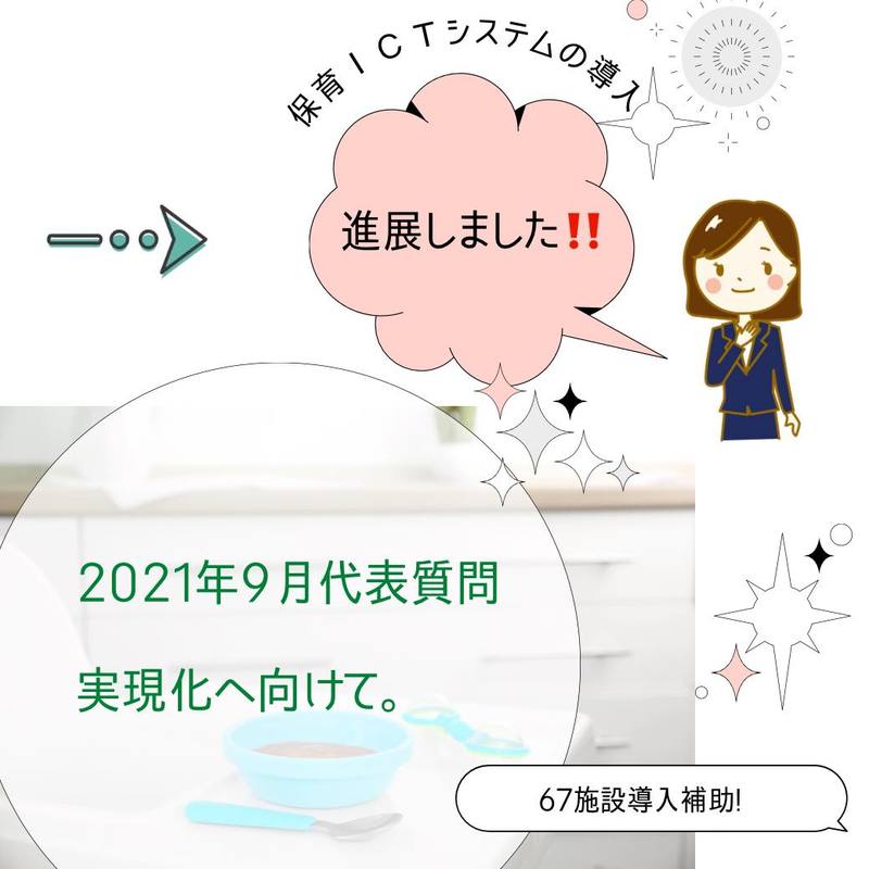 昨年初めての代表質問にて推進した保育業務支援システム。補助導入(67園)が実現化へ前進致しました✨